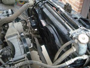 First of all you need to remove the stock mechanical fan and fan shroud. Next mount the Windstar fans on the radiator, some trimming is needed to fit around the hoses.